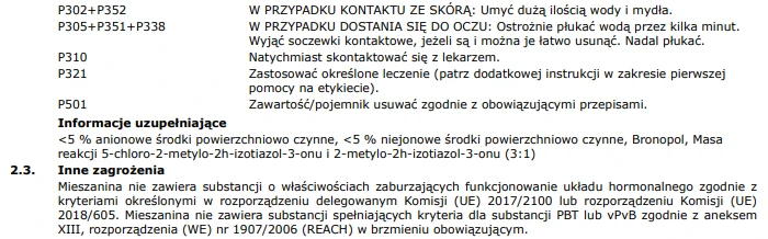 Wszelkie pytania dotyczące właściwości lub bezpieczeństwa produktu można kierować bezpośrednio do producenta lub za pośrednictwem dystrybutora.