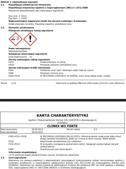 Clinex W3 Forte to profesjonalny, kwaśny płyn do mycia sanitariatów, zaprojektowany do usuwania nawet najtrudniejszych zabrudzeń w łazienkach i toaletach.