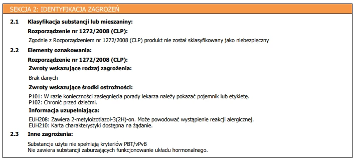 Producent FeniksChemia Sp. Z o.o. jest odpowiedzialny za zapewnienie, że produkt spełnia wymagania dotyczące bezpieczeństwa, identyfikowalności i zgodności z odpowiednimi normami UE.