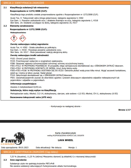 Producent FeniksChemia Sp. Z o.o. jest odpowiedzialny za zapewnienie, że produkt spełnia wymagania dotyczące bezpieczeństwa, identyfikowalności i zgodności z odpowiednimi normami UE.