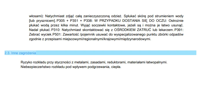 Wszelkie pytania dotyczące właściwości lub bezpieczeństwa produktu można kierować bezpośrednio do producenta lub za pośrednictwem dystrybutora.