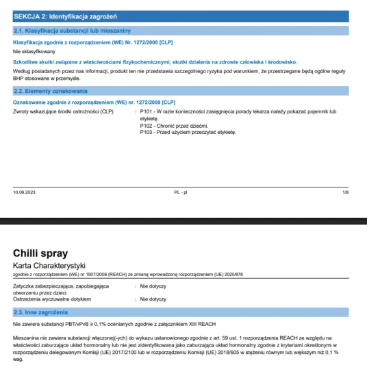Wszelkie pytania dotyczące właściwości lub bezpieczeństwa produktu można kierować bezpośrednio do producenta lub za pośrednictwem dystrybutora.