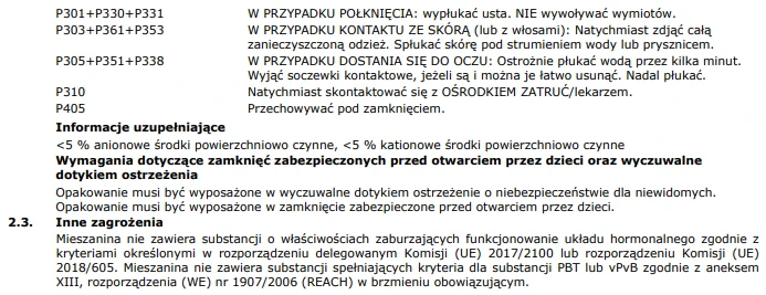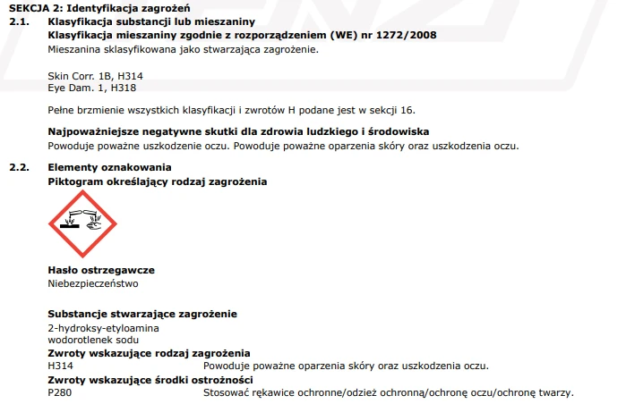 | Zalecane roztwory | Produkt gotowy do użycia. |