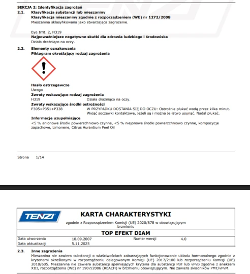 Chcesz zadbać o czystość i bezpieczeństwo swoich podłóg? TENZI TopEfekt® DIAM 1L to niskopieniący preparat myjąco-pielęgnujący, idealny do codziennego czyszczenia posadzek twardych, takich jak kamień, ceramika czy drewno, oraz elastycznych.